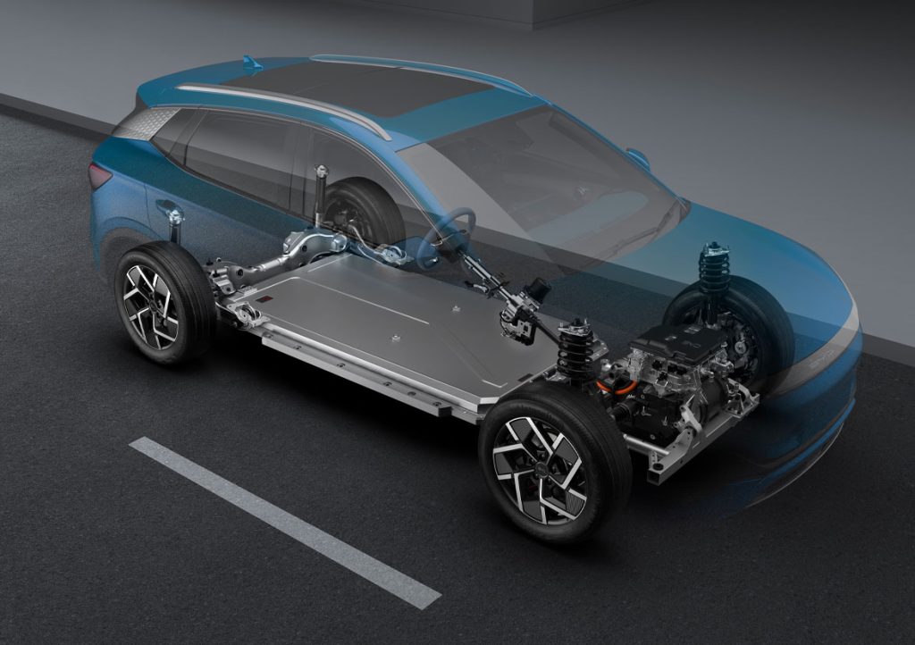 The BYD ATTO 3 features the all-new BYD e-Platform 3.0 designed exclusively for all-electric vehicles. The BYD ATTO 3 takes full advantage of the advantages of e-Platform 3.0 intelligence, efficiency, security, and aesthetics. This platform aims to improve the performance of electric vehicles in terms of safety and range at low temperatures and to improve driving experiences, with the aim of building new smart EVs that are more efficient and safer.